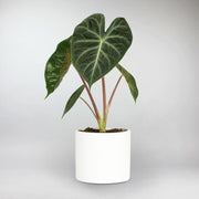 Die Alocasia Black Velvet ist eine wahre Pracht-Alocasia, die für ihre samtig-dunkelgrünen Blätter mit klaren, silbernen Adern geschätzt wird. Kompakt und dennoch eindrucksvoll, macht sie sich hervorragend auf Beistelltischen und in Pflanzenschränken. Sie benötigt helles, indirektes Licht, gleichmäßige Wärme und eine höhere Luftfeuchtigkeit. Gießen Sie erst, wenn die obersten Zentimeter der Erde trocken sind, und verwenden Sie ein grobkörniges Substrat, um Staunässe zu vermeiden.