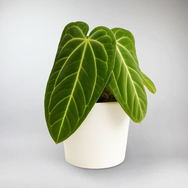 Anthurium villenaorum ist eine seltene Samtblättrige Anthurie mit länglichen, herzförmigen Blättern und zarten, hellen Adern. Ihre anmutige Form passt hervorragend in moderne, helle Wohnräume. Sie bevorzugt Wärme, höhere Luftfeuchtigkeit und helles, indirektes Licht. Gießen Sie erst, wenn die oberste Erdschicht angetrocknet ist, und verwenden Sie ein lockeres, rindenreiches Substrat. Eine ungewöhnliche, elegante und pflegeleichte Zimmerpflanze.